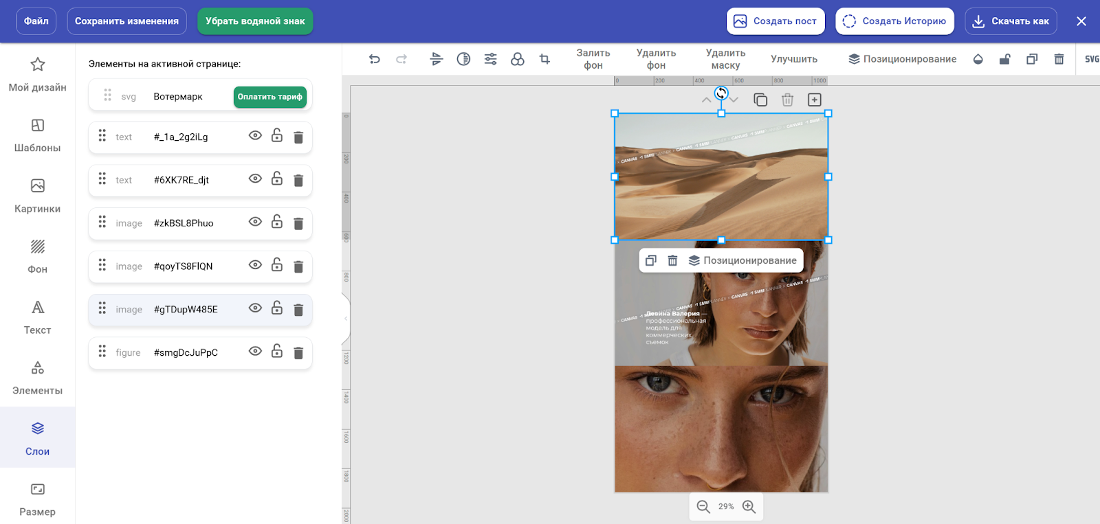 - удобное редактирование и перетаскивание элементов при помощи слоев;