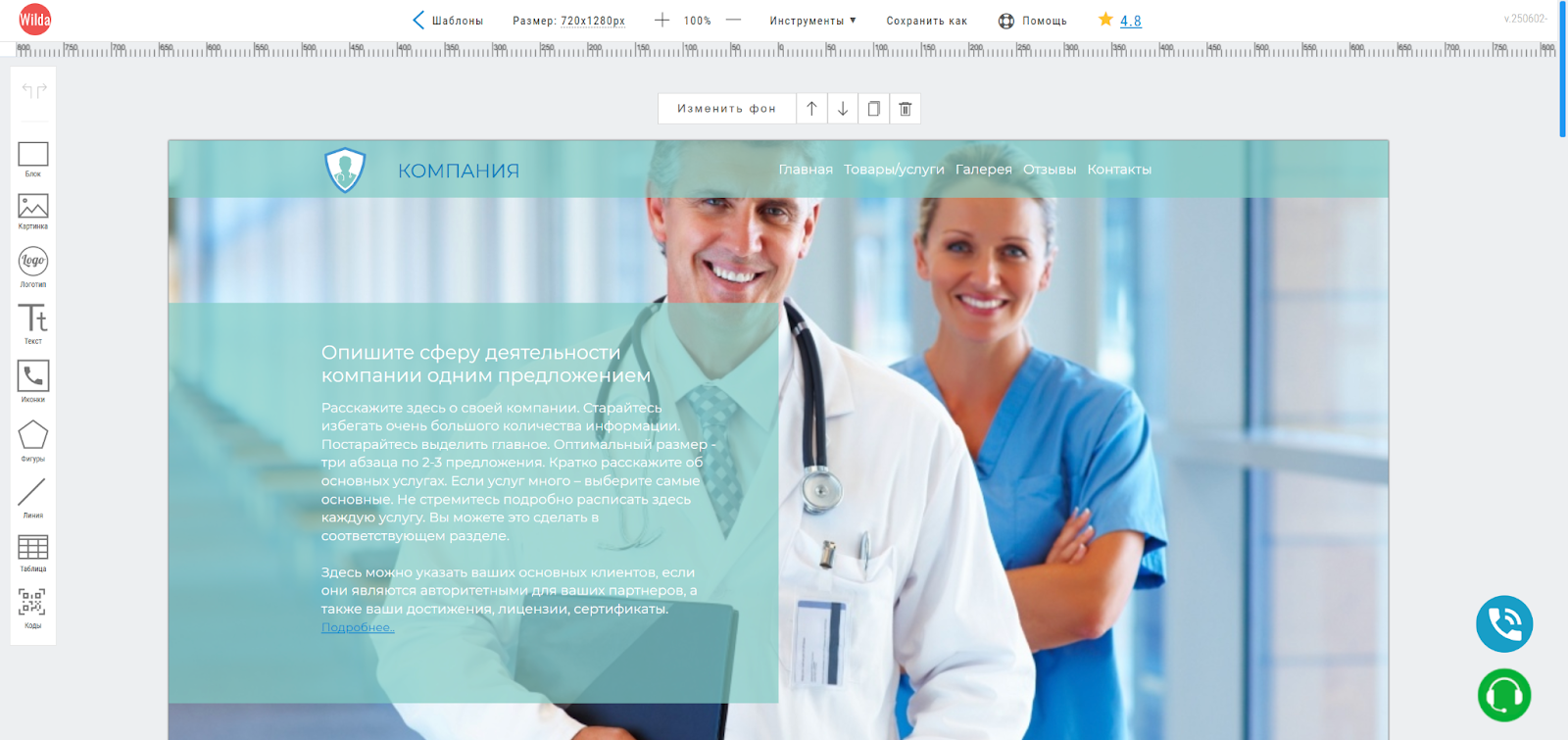 Бесплатный аналог Canva в России с неограниченным числом пробных проектов. Сервис подойдет для решения бизнес-задач: можно подготовить email-письма, визитки, коммерческие предложения, прайс-листы. Здесь же можно подобрать графический дизайн для сайта: в готовых образцах уже есть скомпонованные прототипы веб-страниц с описанием товаров и услуг, отзывами и контактами.