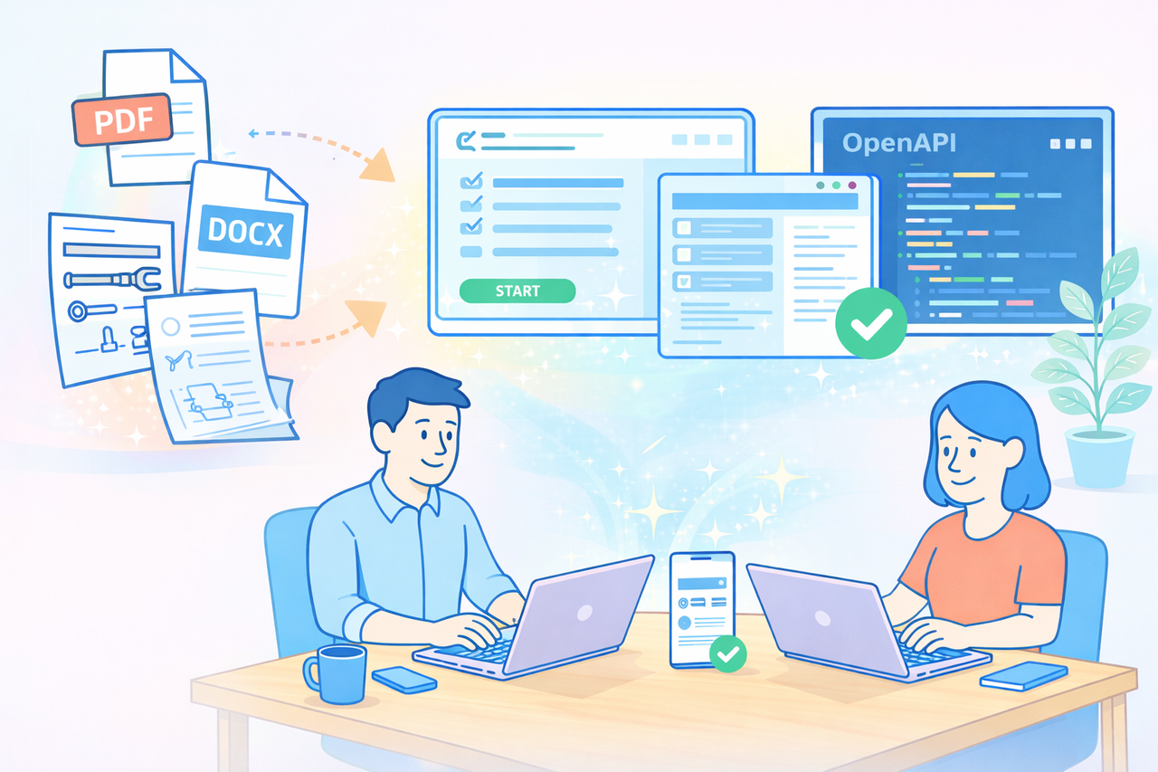 PDF-файлы, Word-документы или сканы инструкций — это прошлый век. Современный стандарт — это интерактивные веб-страницы и машиночитаемые форматы (например, OpenAPI). Машина должна иметь возможность не просто «прочитать» текст, но и понять структуру данных: где вход, где выход, а где ошибка.