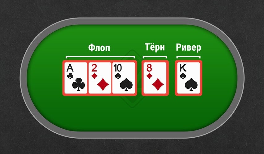 - Сдается четвертая карта — открытая. Теперь ходит игрок с сильнейшей видимой комбинацией.
